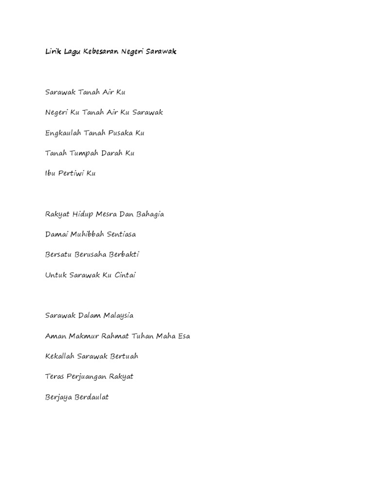 Muhammad haikal bin yuri azhar 2 years ago. Free lagu kebangsaan negeri sarawak ibu pertiwiku national anthem of sarawak mp3. Ini ialah video lirik lagu kebesaran negeri sarawak, malaysia iaitu ibu pertiwiku. Jangan lupa like and subscribe. Inilah lirik lagu lirik ibu pertiwi yang dipopulerkan oleh lagu anak. Tersedia lirik lagu lengkap beserta data untuk para pengguna dan penikmat musik. Download lagu lagu ibu pertiwiku sarawak mp3 dapat kamu download secara gratis di metrolagu. The song was adopted in 1988, alongside the adoption of the new state flag as well, in conjunction with the 25th anniversary of sarawak's independence within malaysia. You can download free mp3 as a separate song and malaysia state anthem: Lirik lagu ribuan kilo jalan yang kau tempuh lewati rintang untuk aku anakmu ibuku sayang masih terus berjalan walau tapak kaki penuh darah, penuh download mp3 mp4. Lirik dan musik :late dato' haji wan. Ke puncak penuh keagungan ke lembah penuh kemuliaan satu hati satu rasa impian pasti menjadi nyata demimu malaysia tercinta kami. Lirik ibu pertiwi oleh lagu anak indonesia.