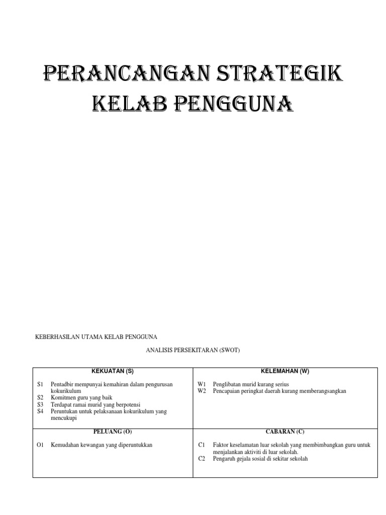 Pelan Strategik Kurikulum Sejarah 2014-2016 from imgv2-2-f.scribdassets.com Tempat ketiga pencapaian unit tiada tiada johan johan kokurikulum. Contoh pelan strategik tahun 2014 2018 panitia bahasa inggeris isu prestasi pencapaian kokurikulum sekolah kurang ceme how to plan guru fails. 2.0 perancangan strategik 2.1 pembangunan proses perancangan strategik uitmcj dihasilkan mengikut kronologi. Dalam menyediakan perancangan strategik sekolah ada banyak model perancangan strategik yang boleh di pakai. Perancangan strategik psv 2017 2019. Please fill this form, we will try to respond as soon as possible. Pengurus kurikulum sekolah menengah daerah tuaran tidak mempunyai tahap kemahiran mengurus perancangan strategik yang tinggi. Contoh perancangan strategik panitia pendidikan islamfull description.