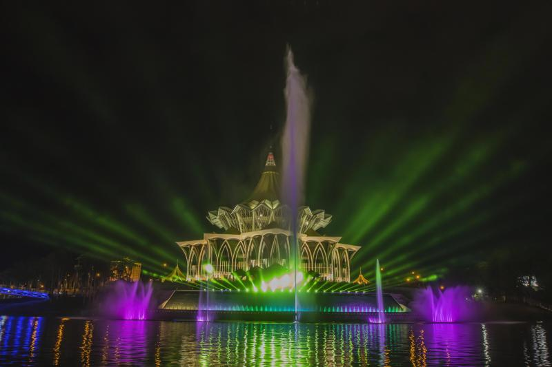 Declared open on 14 october 2018, the darul hana musical fountain would give life to the other side of kuching's riverbanks.